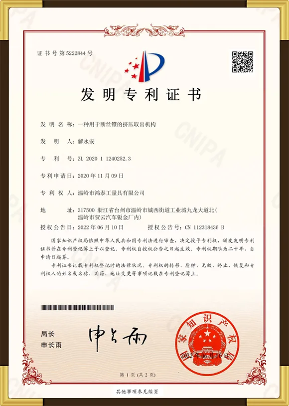 Firma jest wyposażona w podstawowy sprzęt produkcyjny, taki jak szlifierki do gwintowników, sprzęt do obróbki CNC, sprzęt do obróbki cieplnej i przyrządy testujące. Dzięki przemysłowemu Internetowi Rzeczy możliwe jest wzajemne połączenie sprzętu i identyfikowalność danych, co skutkuje 40% wzrostem wydajności produkcji w porównaniu z tradycyjnymi liniami produkcyjnymi i stabilną dokładnością produktu wynoszącą ± 0,005 mm. Proces powlekania obejmuje wysokowydajne rozwiązania, takie jak TiN i TiCN.